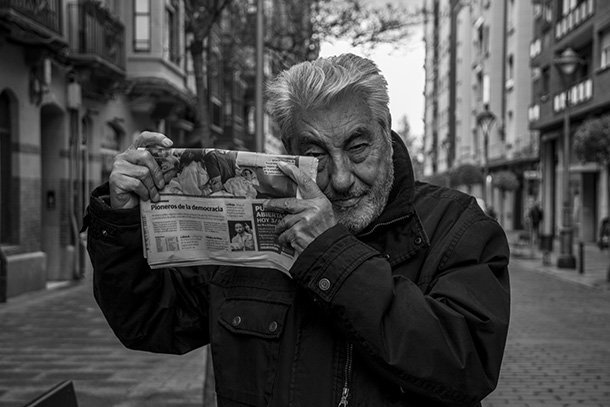 Hago muchas fotos con el teléfono. ¿Sabes por qué? Hago muchas fotos sin uso profesional, ya no estoy trabajando, pero si viendo cosas que me gustan y quiero fotografiarlas. El móvil me da la ventaja de no ir todo el día con la cámara colgada del hombro, salvo que salga a realizar una foto concreta. Ahora muchas fotos la gente no sabe que las he hecho con el teléfono que tiene cámaras mejores que las primeras digitales que salieron al mercado. La ventaja es que me gusta mucho fotografiar a la gente -soy incapaz de crear una foto o de fotografiar naturaleza o una naturaleza muerta-, me gusta fotografiar lo que ya está, lo que veo. Con el teléfono puedo hacer fotos de gente en actitudes naturales, fotos que nunca podría realizar con una cámara porque al sentirse enfocado la gente pierde naturalidad.