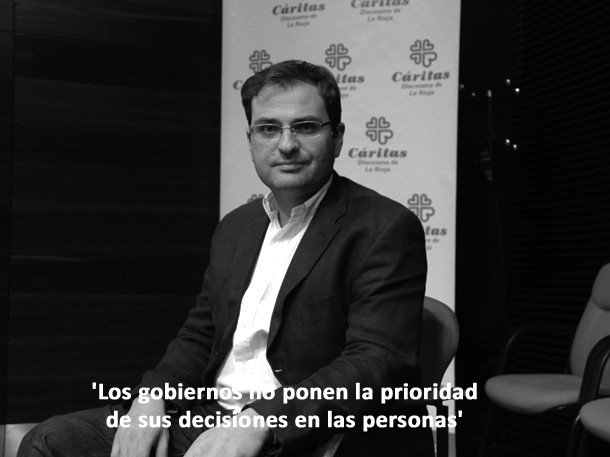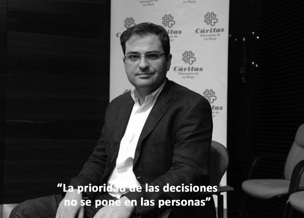 Raúl Flores es miembro del equipo de Estudios de Cáritas Española y uno de los autores del VII Informe Foessa. Un documento que apunta que en España cerca de doce millones de personas viven en exclusión o en riesgo de exclusión social. El dato asusta, se trata del 25 por ciento de la población. En La Rioja, la tasa es del 22,2 por ciento, lo que significa que la población en riesgo de pobreza y exclusión es de más de 71.000 personas y 28.000 hogares. El análisis y las conclusiones del informe señalan también que las crisis no ha afectado a todos por igual, las personas con las rentas más altas las han incrementado durante estos años. La desigualdad social se ha incrementado un 9 por ciento a nivel nacional y un 16 por ciento en La Rioja, según los datos de Cáritas. Con este panel descriptivo sobre la mesa, le preguntamos a Raúl sobre el presente y el futuro.