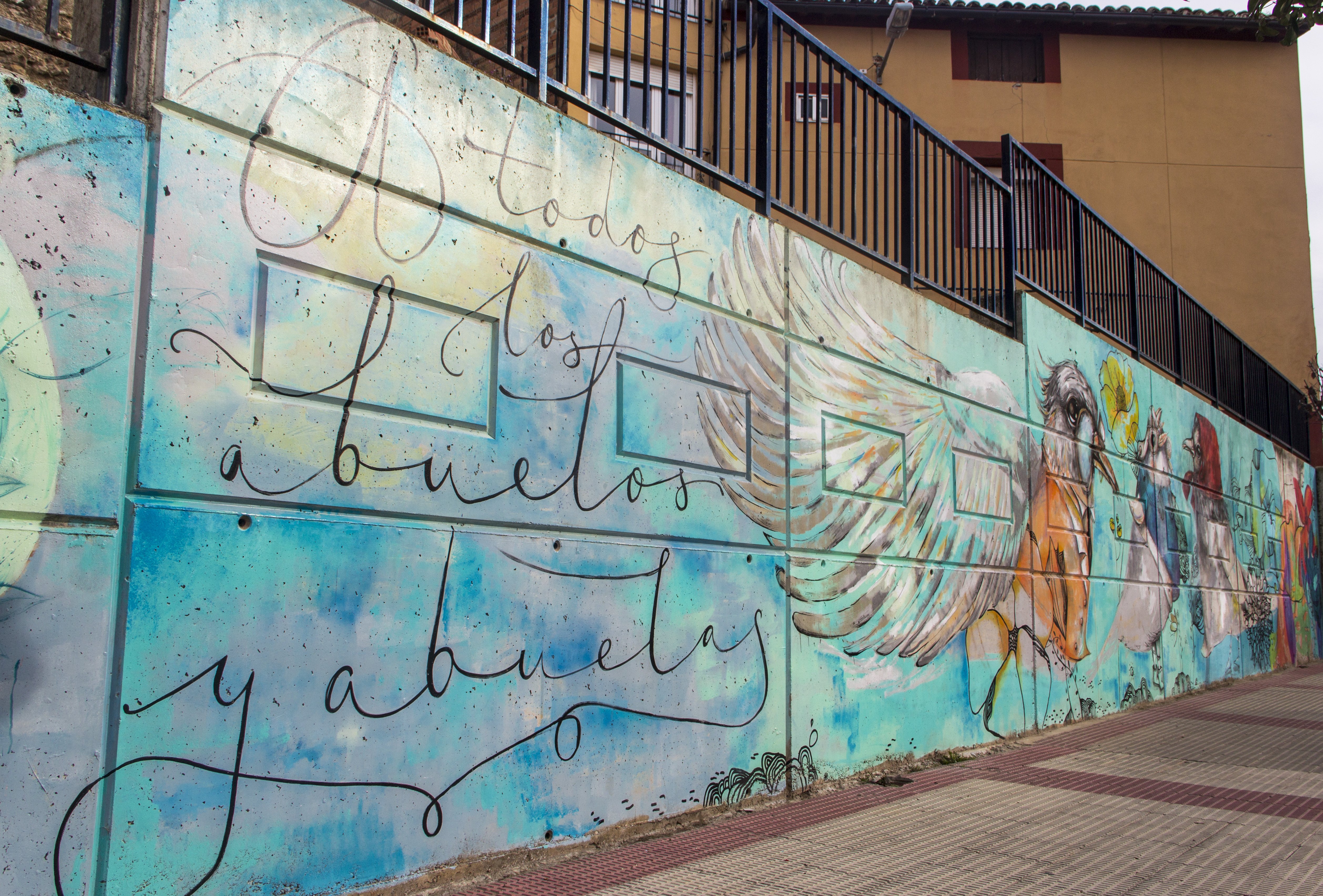 El Ayuntamiento de Villamediana de Iregua ha inaugurado hoy sábado, 20 de noviembre, el mural homenaje a las personas mayores del municipio. La obra, de 20 metros de longitud, recorre ya el medianil de la calle Cameros, a la altura del número 22. La alcaldesa de Villamediana, Ana Belén Martínez, ha resaltado que “a través de este mural, Villamediana reconoce la labor esencial de las personas mayores en el municipio”. Al acto han asistido medio centenar de vecinos de la localidad, protagonista la mayoría del reconocimiento expresado a través de la obra de arte urbano. Martínez ha estado acompañada por la directora general de Dependencia del Gobierno de La Rioja, María Somalo, y los concejales Enrique San Román, Ana Isabel Román Puerta y Pedro Lorenzo, y ha destacado “la vida dedicada a Villamediana, su aportación constante al día a día, y su implicación y colaboración para revertir los momentos más complicados de la pandemia, aún siendo una de las poblaciones de mayor riesgo”. La alcaldesa ha apuntado que el “mural representa la gratitud de todos los vecinos de Villamediana hacia las personas mayores de la localidad” y les ha invitado “a continuar participando para hacer de Villamediana cada día un lugar mejor”.