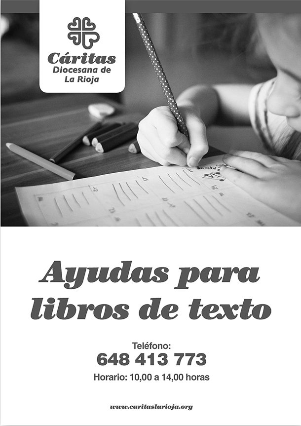 Cáritas La Rioja ha habilitado un número de teléfono (648 413 773) en horario de 10 a 14 horas y un equipo de voluntarios para poder atender específicamente las solicitudes de ayuda recibidas para libros de texto. Hasta la fecha se han entregado durante este mes 5.380 euros en 29 ayudas. Estas corresponden a aquellas familias que no pueden acceder a subvenciones públicas. En el caso de aquellos que puedan ser beneficiarios de dichas ayudas del Gobierno de La Rioja pero no puedan afrontar la compra de los libros exigida para cobrarlas, Cáritas les adelantará el dinero para que lo hagan (como ya lo ha venido haciendo en años anteriores). “Sería necesario revisar este proceso de subvenciones para evitar que las familias en riesgo de exclusión se vean en la necesidad de tener que adelantar el dinero y adoptar las medidas necesarias antes del inicio del curso escolar”, explica Fernando Beltrán, director de Cáritas La Rioja.