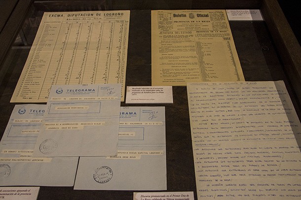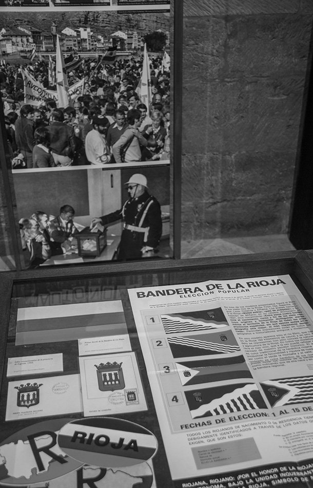 ‘Todos somos Parlamento. 30 años del Parlamento de La Rioja en el Convento de La Merced’ ofrece también la posibilidad de acercarse a lo que fue el proceso regionalista riojano. Una simbólica seña de carretera de ‘Provincia de Logroño’ junto a un megáfono decorado con una pegatina de los incipientes colores de la bandera de La Rioja recrea el momento reivindicativo que vivió la región a mediados de los años 70. La exposición muestra un ejemplar de la publicación que llamaba a la participación ciudadana para elegir bandera para La Rioja. Una consulta convocada del 1 al 15 de septiembre de 1977.