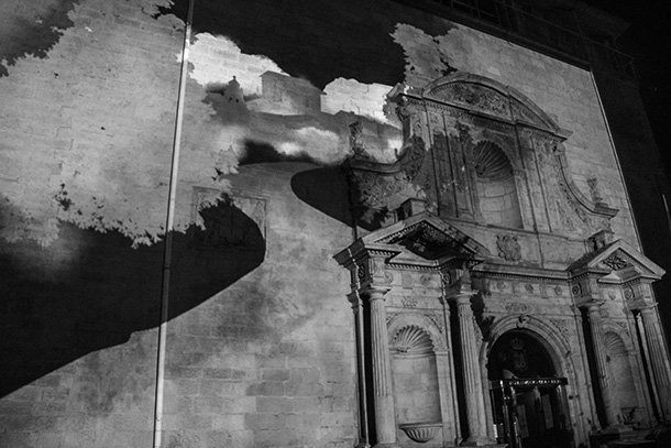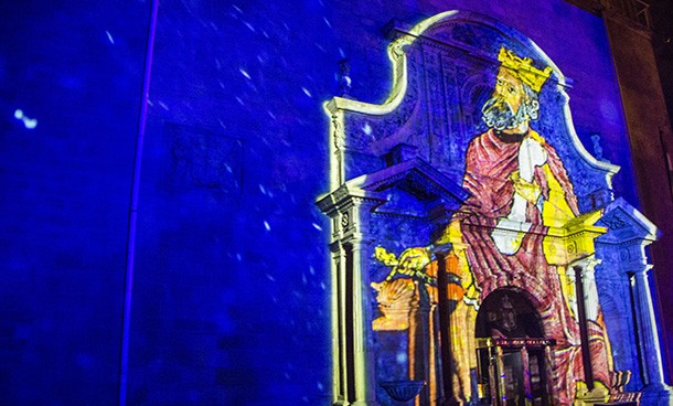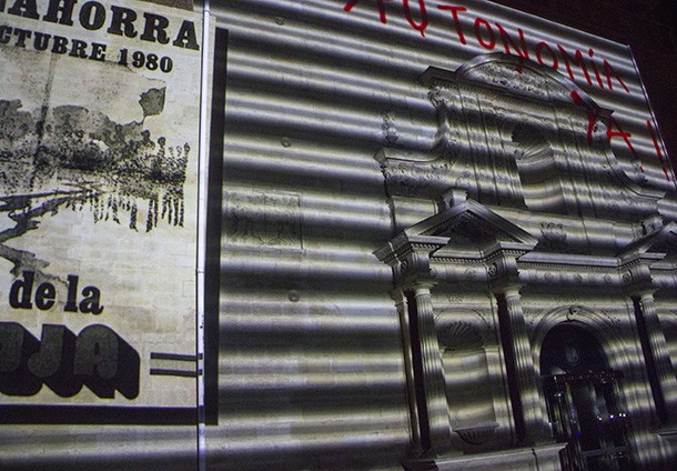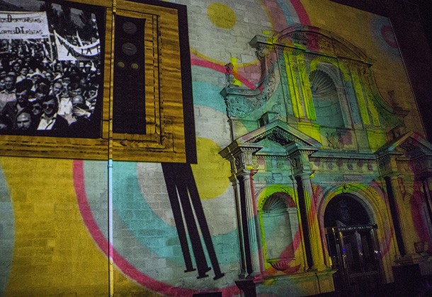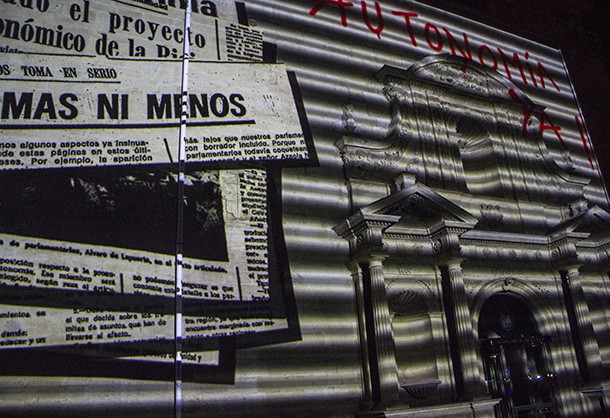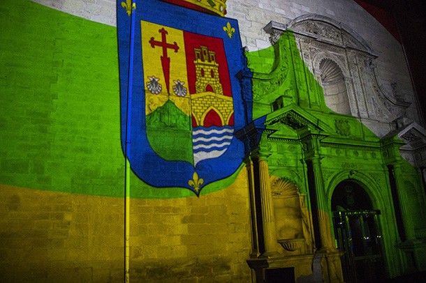 La proyección de un videomapping en la fachada principal del edificio sobre la historia del antiguo Convento de la Merced cerró la inauguración de la exposición y de la celebración del 30 aniversario del Convento de la Merced. como sede del Parlamnto de La Rioja. Un edificio que cuenta, sillar a sillar la historia de la región. /Javi Muro