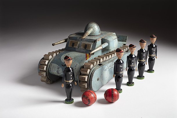 El adoctrinamiento y la instrucción han estado presentes en los juguetes de diversas épocas. El objetivo era educar a los niños en cuestiones políticas, posiciones ideológicas e incluso sobre aspectos como el belicismo o las creencias religiosas. Desde tanques y soldados con las respectivas insignias características, hasta tableros de parchís con símbolos ideológicos o cuadernos de niños manuscritos que muestran la influencia de las familias en su pensamiento.