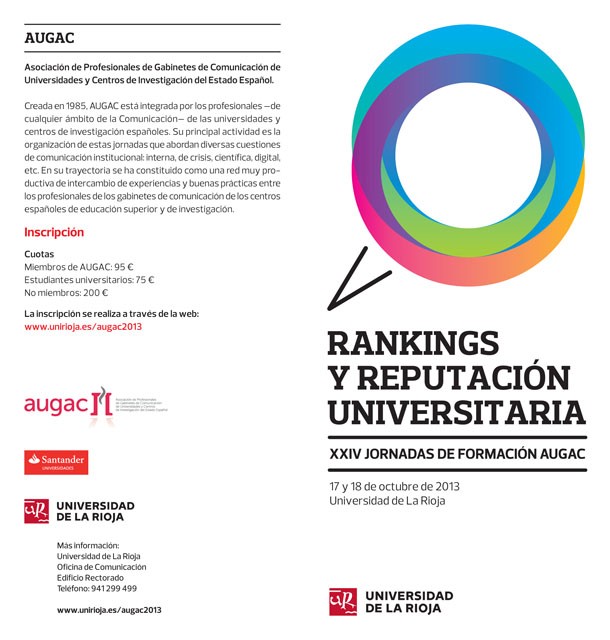 La Universidad de La Rioja acogerá los días 17 y 18 de octubre de 2013 las XXIV Jornadas Formativas de la Asociación de Profesionales de los Gabinetes de Comunicación de las Universidades y Centros de Investigación Españoles.