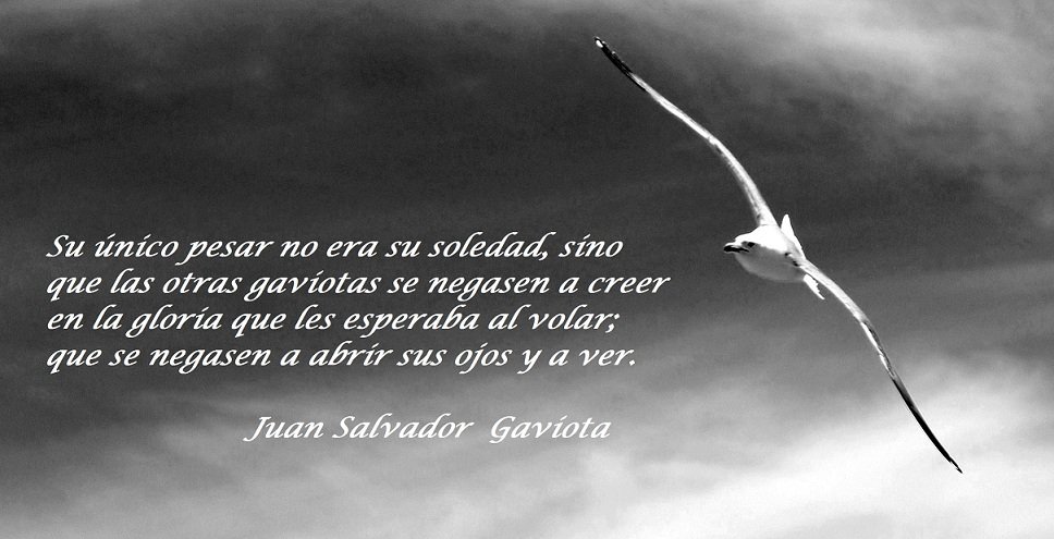 "No aprendas nada, y el próximo mundo será igual que éste, con las mismas limitaciones y pesos de plomo que superar". Juan Salvador Gaviota es una novela corta escrita por el estadounidense Richard Bach sobre una gaviota y su aprendizaje sobre la vida y el volar. Una obra que todos deberíamos leer alguna vez sin importar la edad porque marcará una antes y un después en la forma en la que nos vemos a nosotros mismos y al otro.
