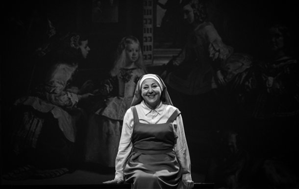 “¿Vemos o nos ven?”, se pregunta Foucault en su ensayo sobre ‘Las Meninas’, consciente de que Velázquez nos asigna “un lugar a la vez privilegiado y obligatorio” en su pintura. Desde el escenario, entre el cuadro y nuestro (elegido) sitio obligatorio, Sor Ángela nos invita a ver su metamorfosis. Estamos en 2037 y gobierna ‘Puebloenpie’. Para pagar los intereses de una deuda insostenible, esta caricatura de Podemos va a vender la obra maestra de Velázquez a una petromonarquía árabe. Así comienza ‘La autora de Las Meninas’, una distopía de Ernesto Caballero que nos alerta de políticos utilitaristas mientras reflexiona sobre los límites de la creatividad. No te fíes de la sonrisa cándida de esta monja que debe copiar ‘Las Meninas’. En el alma de Sor Ángela duerme un ego que el diablo despertará a golpe de tentaciones, en un viaje disparatado e inolvidable a través de las vanguardias del siglo XX. Soy incapaz de imaginarla protagonizada por otra actriz que no sea Carmen Machi. Insuperable./Joaquín Armada desde 'Después del Hipopótamo'
