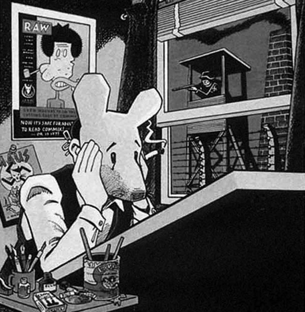 Para narrar en viñetas lo que le parecía incontable, el paso de sus padres por aquella fábrica de muerte, Art Spiegelman convirtió a los judíos en ratones, a los alemanes en gatos, a los franceses en ranas, a los polacos en cerdos… En el Nueva York de finales de los setenta, grabadora en mano, Spiegelman conversa con su padre, convertido en un anciano imposible, caricatura del judío tacaño, un hombre que recuenta cada mañana las galletas que le quedan para desayunar y que cada noche aúlla de dolor en sus pesadillas. Con su máscara de ratón, Spiegelman dibuja las palabras de su padre en viñetas oscuras, feas, siniestras, viaja en flash backs a un pasado donde los gatos acosan a los ratones, y los explotan y matan de forma caprichosa y cruel.