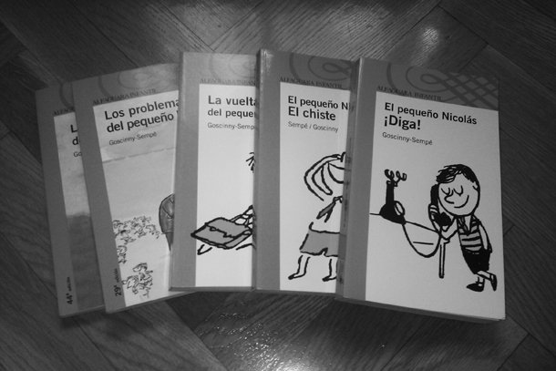 El pequeño Nicolás (Le petit Nicolas) son una serie de libros infantiles escritos por el francés René Goscinny, creador de personajes como Astérix y Obélix, e ilustrados por Jean-Jacques Sempé. Todos los libros cuentan historias cortas, narradas en primera persona por el propio Nicolás, un chico travieso de unos seis años proveniente de una familia francesa de clase media durante los años 50, con las que desternillarte. Yo las recuerdo con mucho cariño.