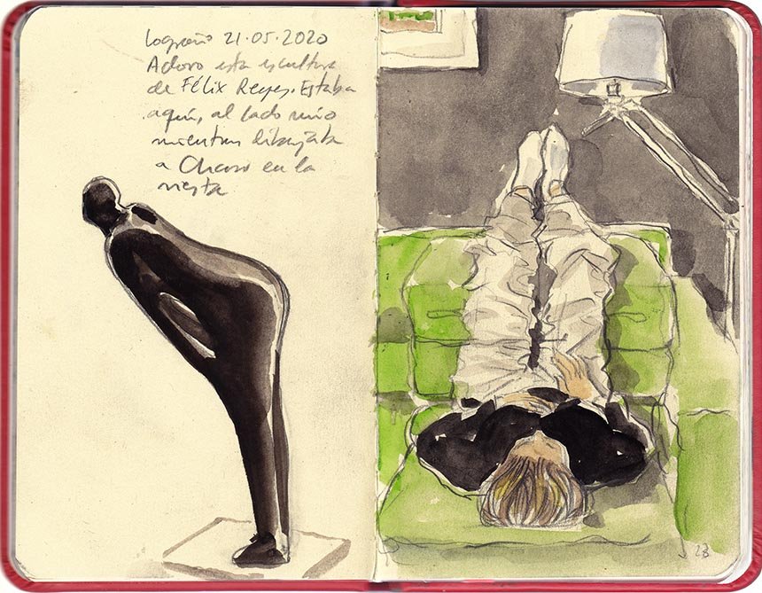 Adoro esa estatuilla de Félix Reyes. Estaba aquí, al lado del río, mientras dibujaba a Charo en la siesta.