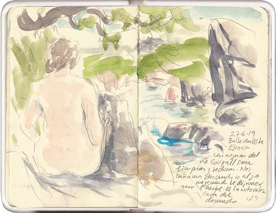 Ballachulish, Escocia. Las aguas del río Coupall son limpias y sedosas. Nos bañamos desnudos y algo me recuerda al Déjeuner sur l'herbe. Es la naturaleza casta del desnudo.