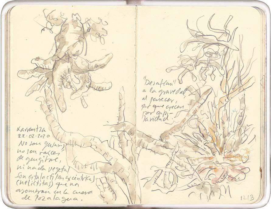 No son gusanos ni raíces de jengibre, ni nada vegetal, son estalactitas que se retuercen, en vez de doblegarse a la gravedad. Así las hay en la cueva de Pozolagua, Karantza.