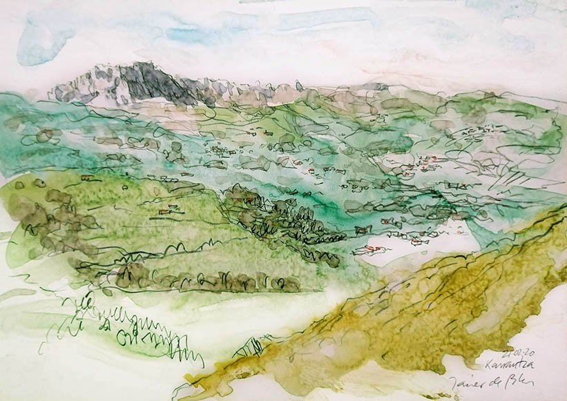 Allí nos dijeron: el valle es como un cuenco y la mejor manera de verlo es bordearlo.Hermosos prados de verdes diferentes, rocas vivas, aldeas y caseríos. De entrada piensas en Heidi, pero esto tiene algo de ensoñación, como 'Et in Arcadia ego' de Poussin.