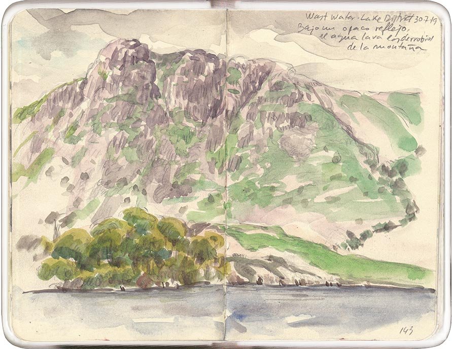 Bajo un opaco reflejo, el agua lava los derrubios de la montaña. Por la noche en Nether Wasdale, casi a oscuras, los dibujos parecen huellas de una realidad difusa.