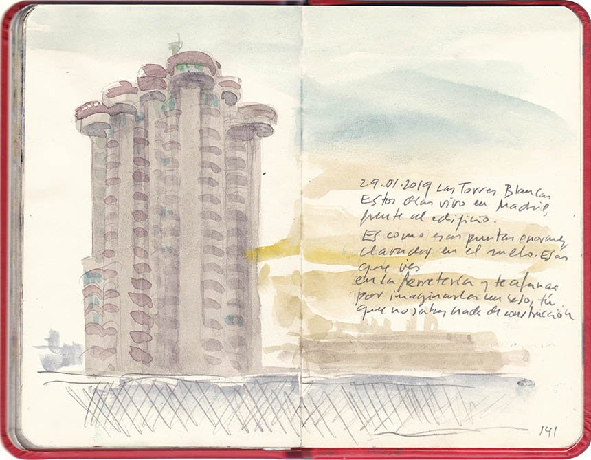 Estos días vivo en Madrid, frente al edificio de Oiza. Es como un manojo de esas enormes puntas de hierro, clavadas en el suelo. Esas que ves en la ferreterría y te afanas por imaginarles un uso con ese tamaño, tú, que no sabes nada spbre construcción. Es un icono de Madrid Este y me gusta, pero no me preguntéis porqué.