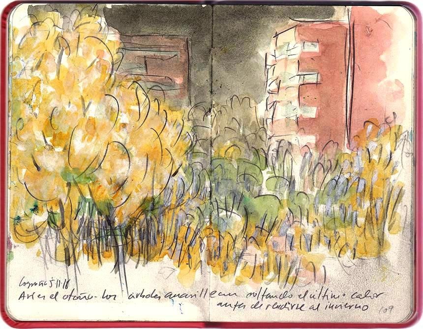 Una mañana de otoño, el cielo estaba negro, pero los árboles conservaban la luz del sol.