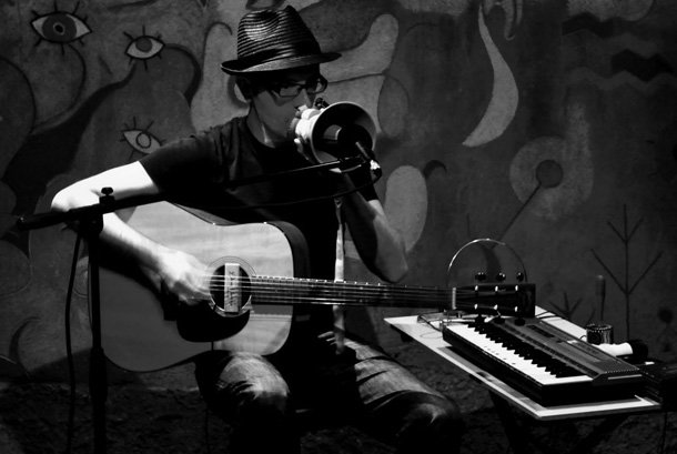Retomamos un disco de 2014 como es el del músico barcelonés David Vilà Marfil, o lo que es lo mismo, Caustic Roll Dave, al que tuvimos la oportunidad de conocer en el Curso de Verano “Identidad y Música” de la Universidad de La Rioja celebrado los días 10 y 11 de septiembre en Logroño. Caustic Roll Dave actúo el día 10 en el Biribay de la mano de la FastFun Bizarre y luego participó el día 11 en la mesa redonda “Y la industria musical hizo crack” junto a Edi Clavo, Juan Santaner, David García Aristegui y Esteban Hernández. La actuación de Caustic Roll Dave en el Biribay fue mucho más que convincente y nos dejó tan buen sabor de boca que, rápidamente, nos hicimos con su último disco, este Approaching Noise. No es una propuesta convencional la de Caustic Roll Dave, y seguro que a más de uno y una se le atraganta, ya que, partiendo del Blues, con una presencia destacada de la armónica y de unas guitarras punzantes, su música deriva hacia terrenos muy heterodoxos donde caben samplers, cajas de ritmos, megáfonos, etc., que configuran una música por momentos hipnótica y adictiva. Se nota que David es fan de Tom Waits, porque su propuesta recuerda a ciertas derivadas del californiano, pero también nos lleva a pensar en cómo si Mark Oliver Everett (E) hubiese llevado sus Eels un paso más allá.