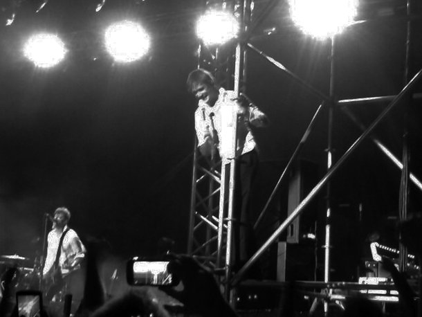 Para entonces, la pista del Palacio presentaba muy buen aspecto, sin apreturas. The Hives salieron a escena con sus trajes, impecables con sus chaquetas blancas y pantalones negros, y desde el inicio arrollaron a un público que estaba entregado de antemano. El garage rock de The Hives, ampliado a la paleta del punk, se basó en el carisma de su frontman, Pelle Almqvist, que se comunicó continuamente con el público en castellano y en inglés, en algunos momentos resultó agotador; en sus dos guitarristas, destacando Nicholaus Arson; y la sección rítmica, donde Chris Dangerous impuso su velocidad a la batería. Aquello fue un no parar de grandes temas, donde destacaron los procedentes de su disco más exitoso, ‘Tyrannosaurus Hives’ y canciones tan impactantes como ‘Have to Say I Told You So’ o ‘Main Offender’, mientras que Almqvist seguía llevándose al público de calle.